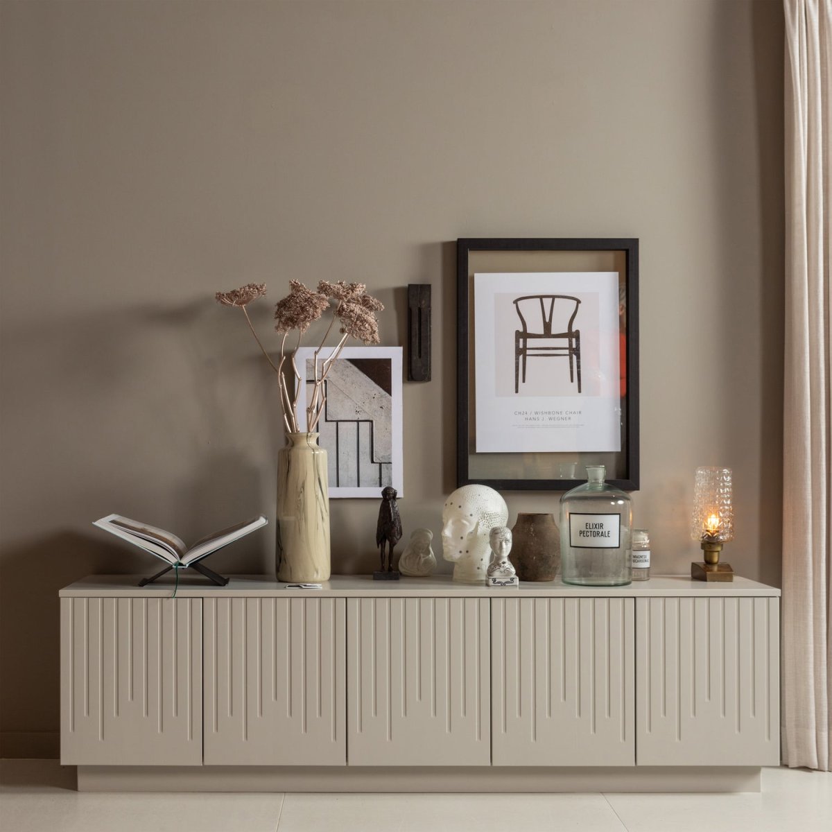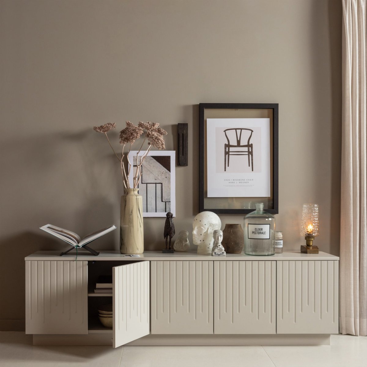 Det var inspirationskilden til træudskæringen på dørene til dette Pencil TV-skab fra kollektionen fra det hollandske interiørmærke BePureHome.