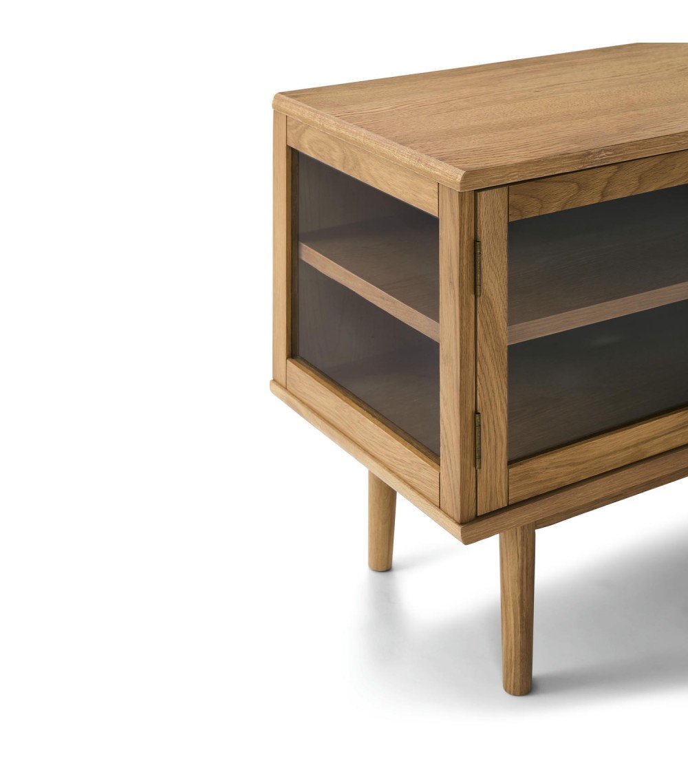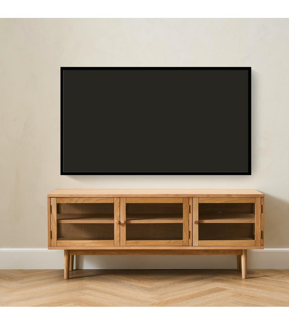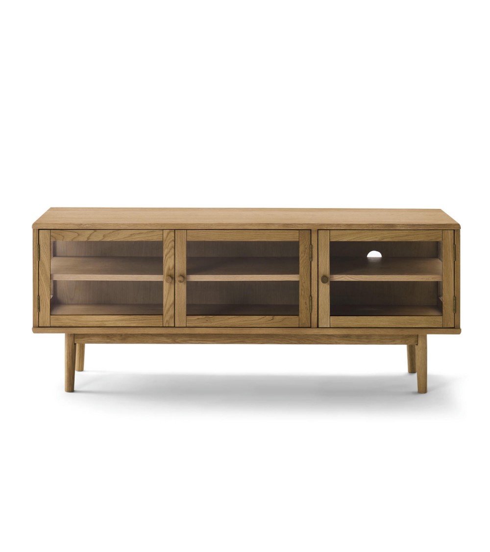 ACT NORDIC Langley TV-bord, m. lamelfront og 2 skydelåger - natur egefinér og eg (140x40x45)