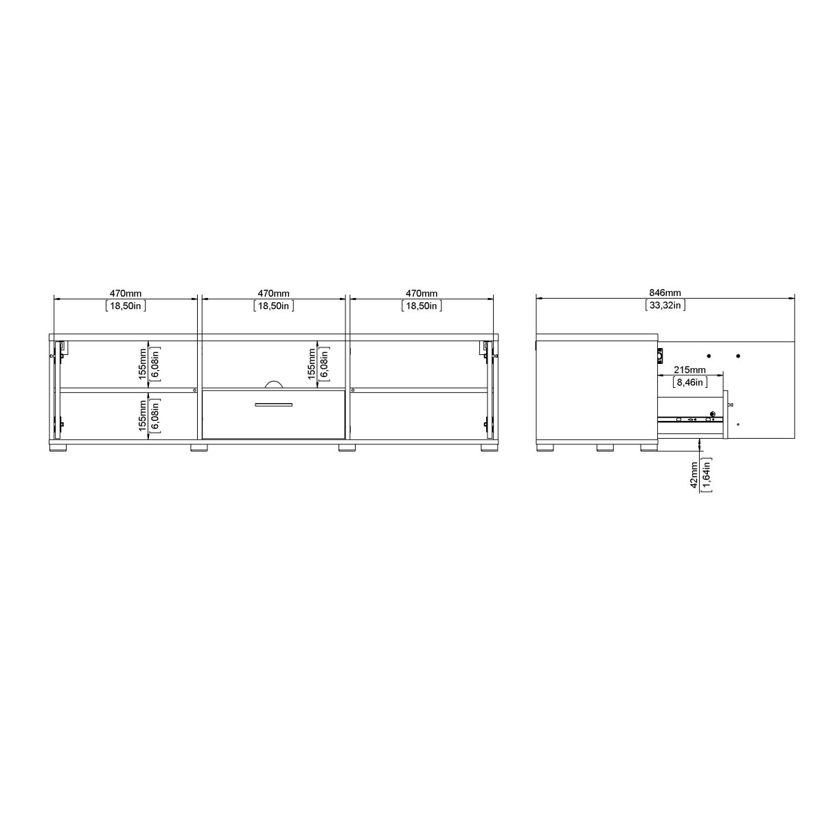 Kasse 1 - mål i cm (LxBxH) 159,8x47x14,3