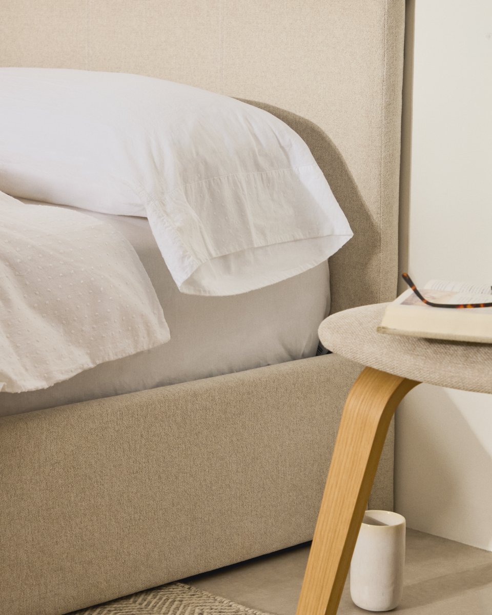 KAVE HOME Blok sengeramme, m. sengegavl, aftageligt betræk, u. madras, u. bund - ecru stof (90x200)