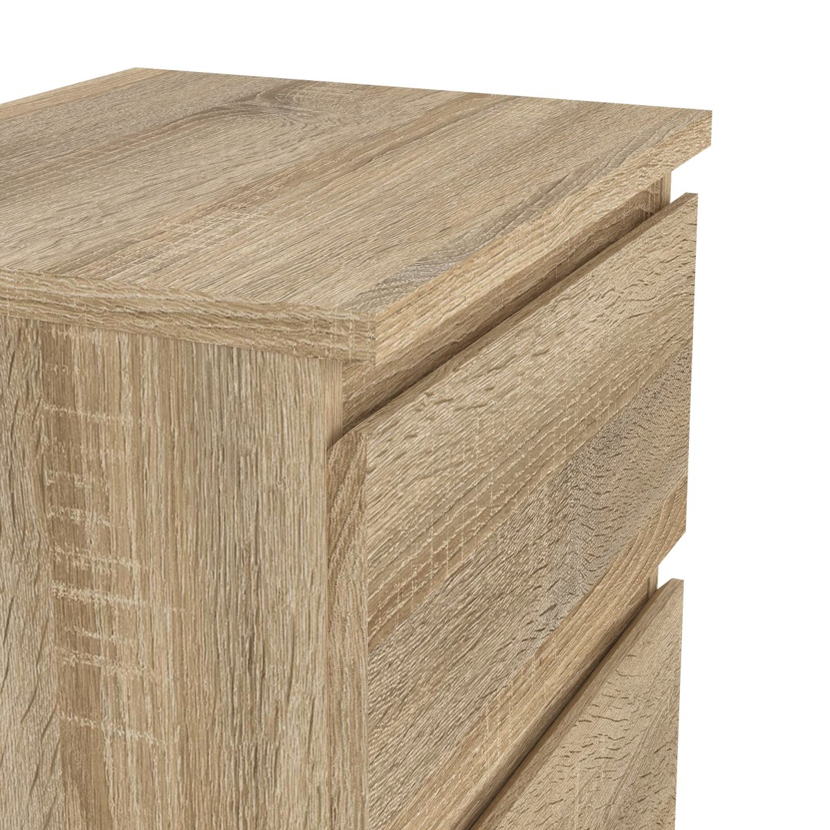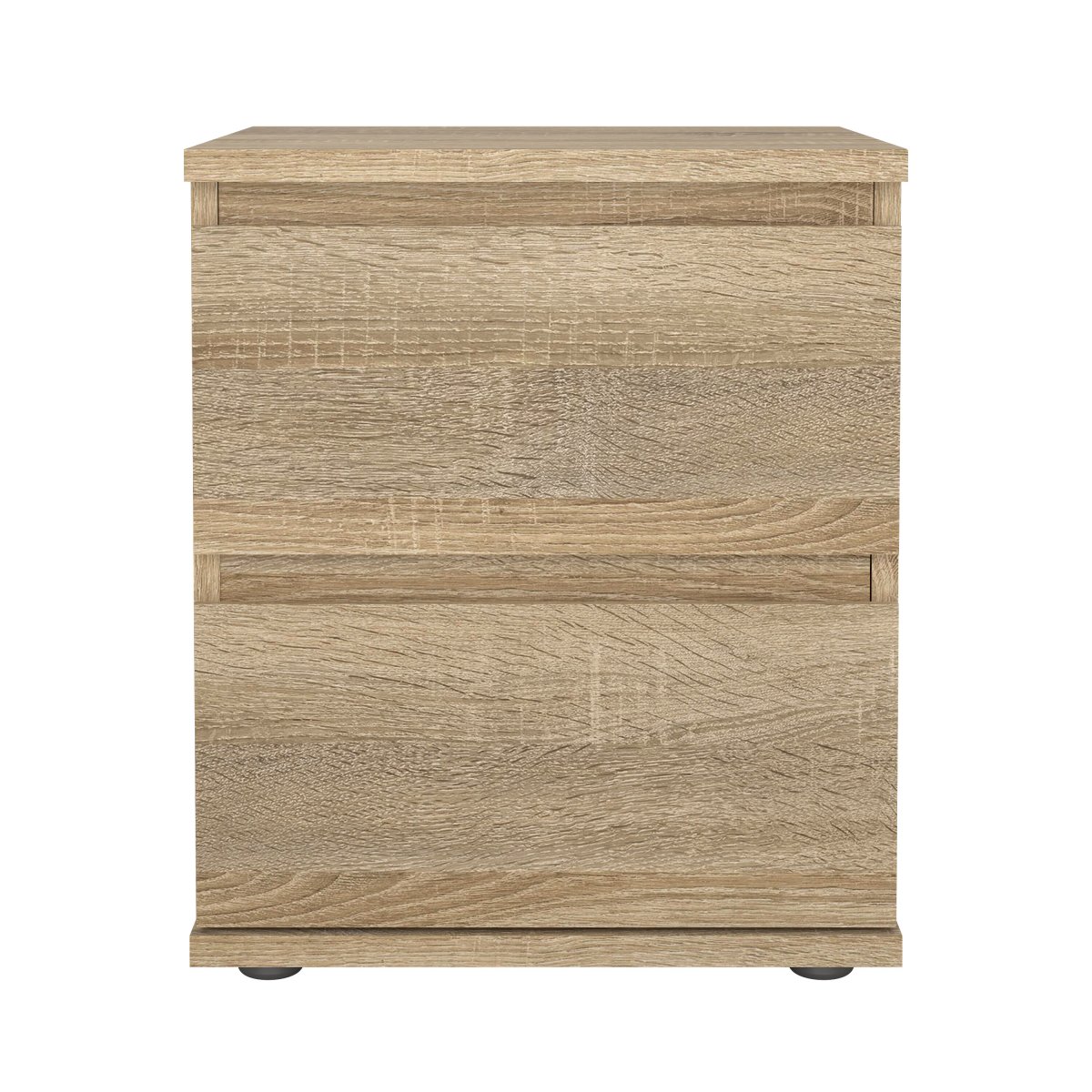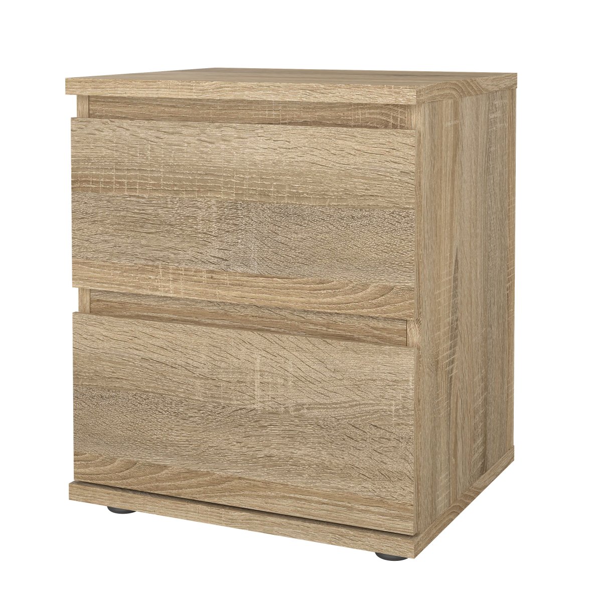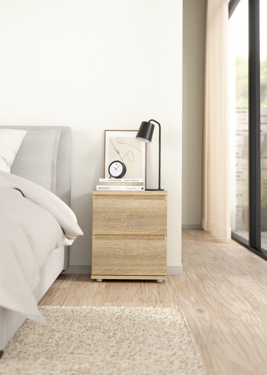 Flot enkel natbord med den flotte kombination af hvid og skuffe samt ben af eg. Et natbord der vil passe til alle slags senge da bordet har et tidløst og enkel udseende. Sengebordet har en skuffe uden greb, samt en lille hylde, hvor der bla. kan opbevares blade, bøger mm. Natbordet står på 4 ben der er lavet af eg, som løfter bordet op. Bordet er 50,1 cm bredt hvilket gør at en lampe kun vil gøre natbordet smukkere.