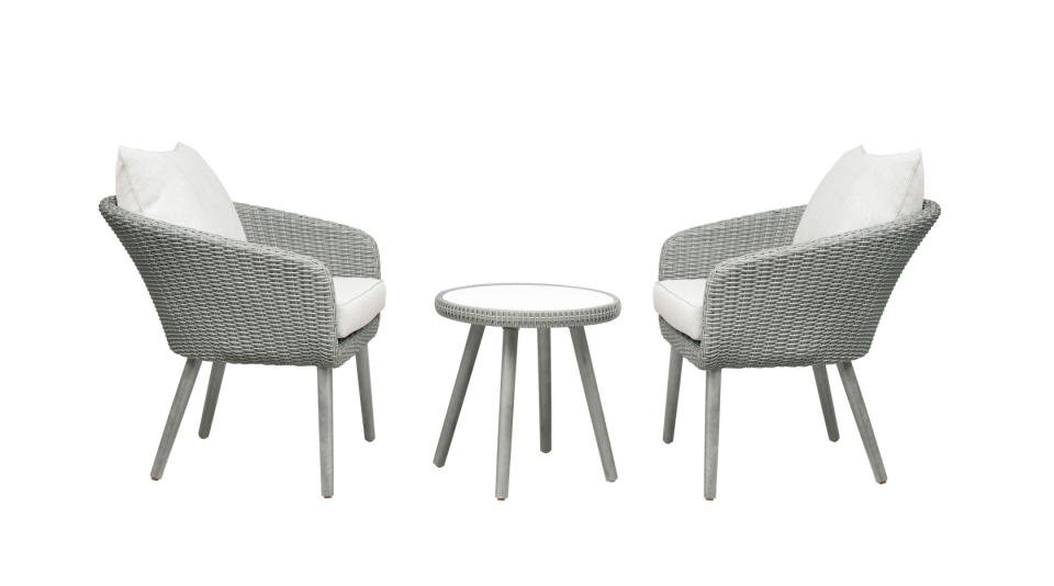 Maui cafésæt, m. 1 bord og 2 stole - rattan flet og stone grå metal