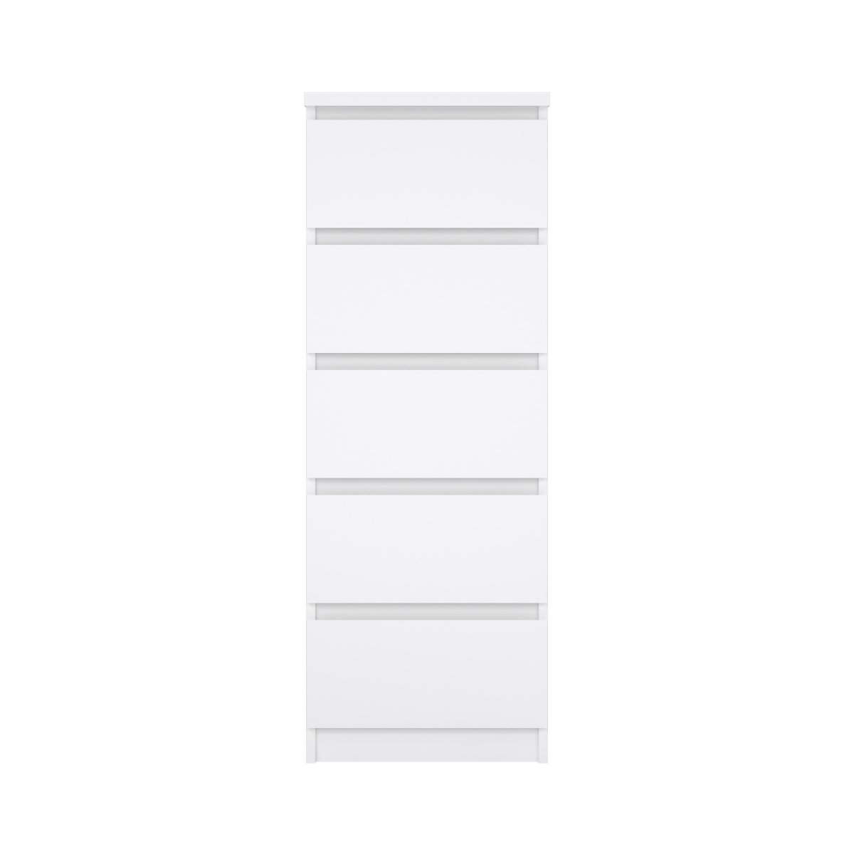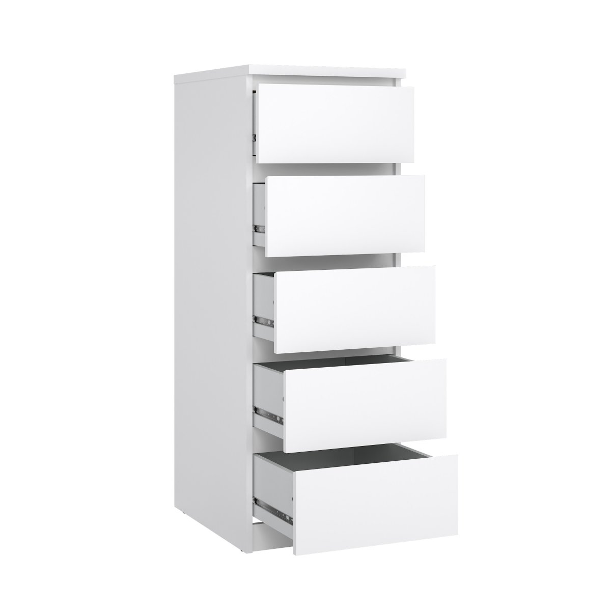Udført i møbelplade med folieoverflade, der ikke falmer.  De fire store og fire små skuffer monteres på metal kugleudtræk. Under kommoden er der stilskruer hvis der skulle være skævheder på gulvet.