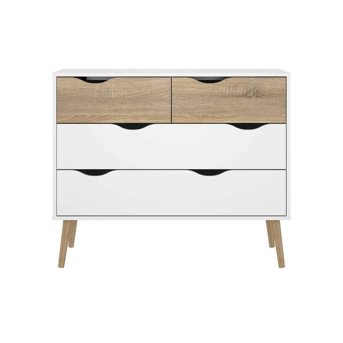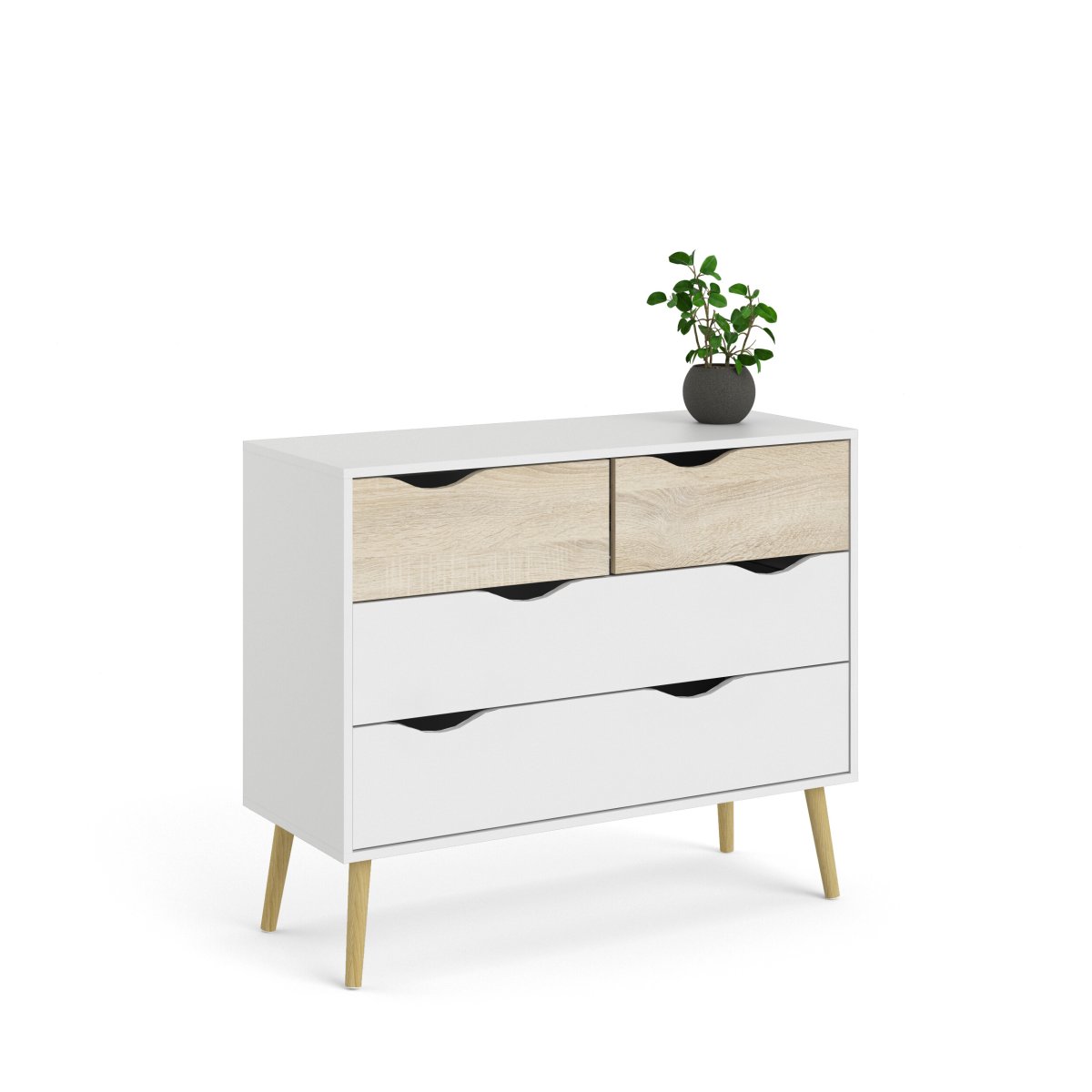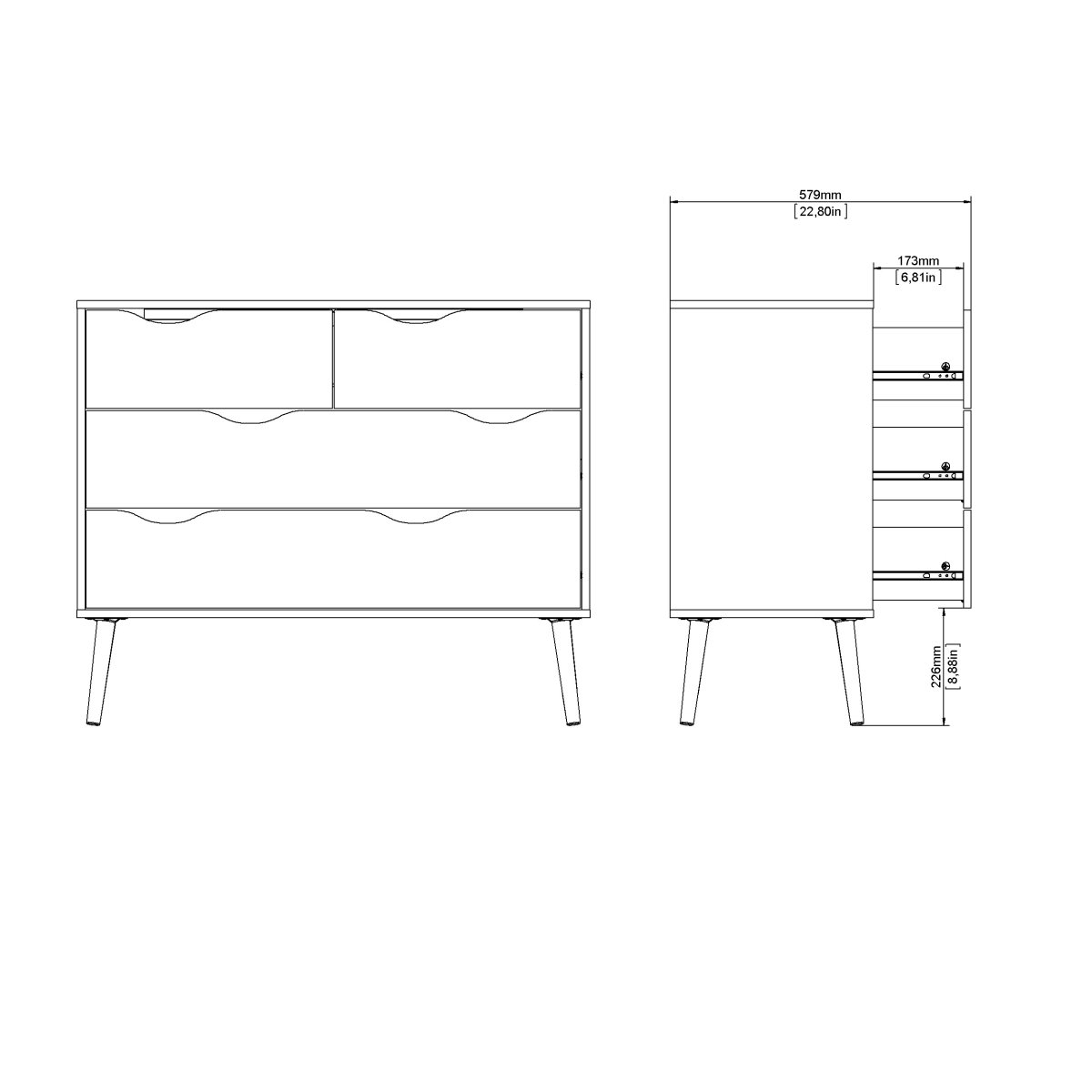 Der er masser af plads til opbevaring i Mary kommodens fem skuffer, og skufferne gør det også muligt at skabe lidt system i dine ting, da hver skuffe kan bruges til forskellige typer af ting. Kommoden er ret høj og smal, hvilket gør kommoden helt ideel til mindre rum, hvor kommoden udnytter højden og ikke bruger for meget gulvplads, så du kan bruge gulvpladsen til noget andet.