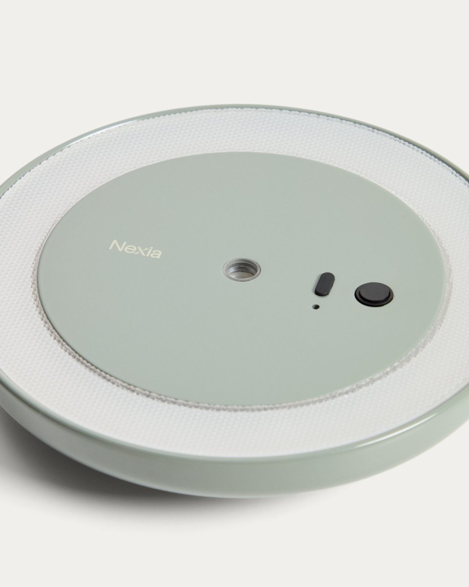 - Bærbar loftslampe i aluminium med lysegrøn malet finish.