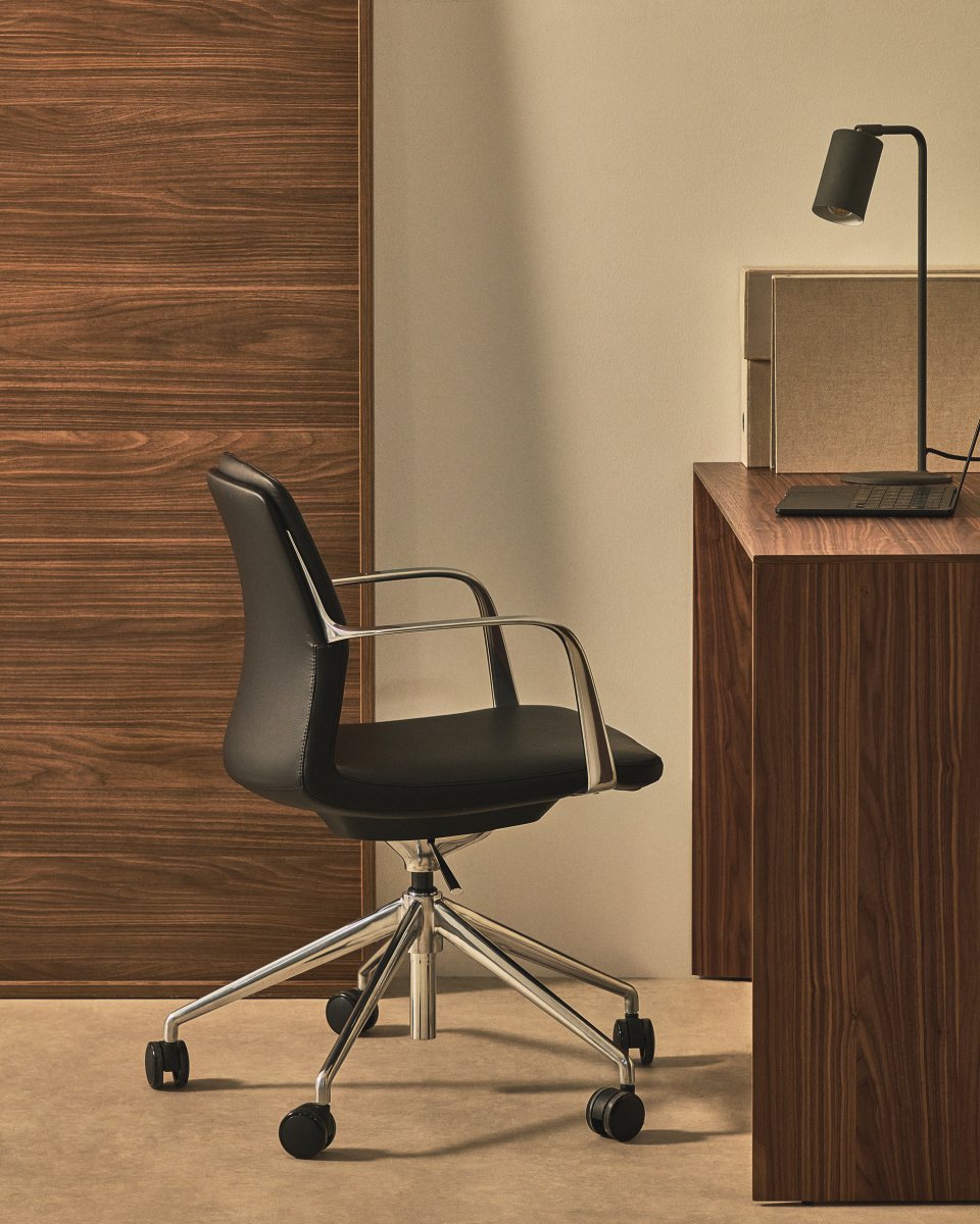 HOUSE NORDIC Monaco kontorstol, m. drejefunktion og hjul - mørkebrun PU og sort metal