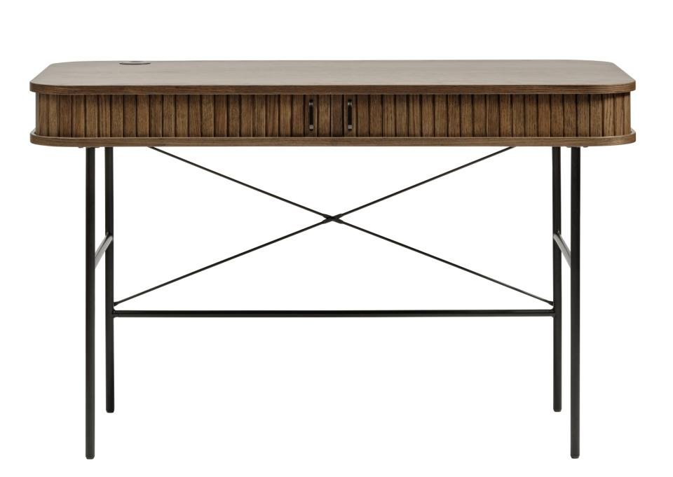 ACT NORDIC Langley skrivebord, m. lamelfront og 2 skydelåger - natur egefinér og eg (100x50x75)