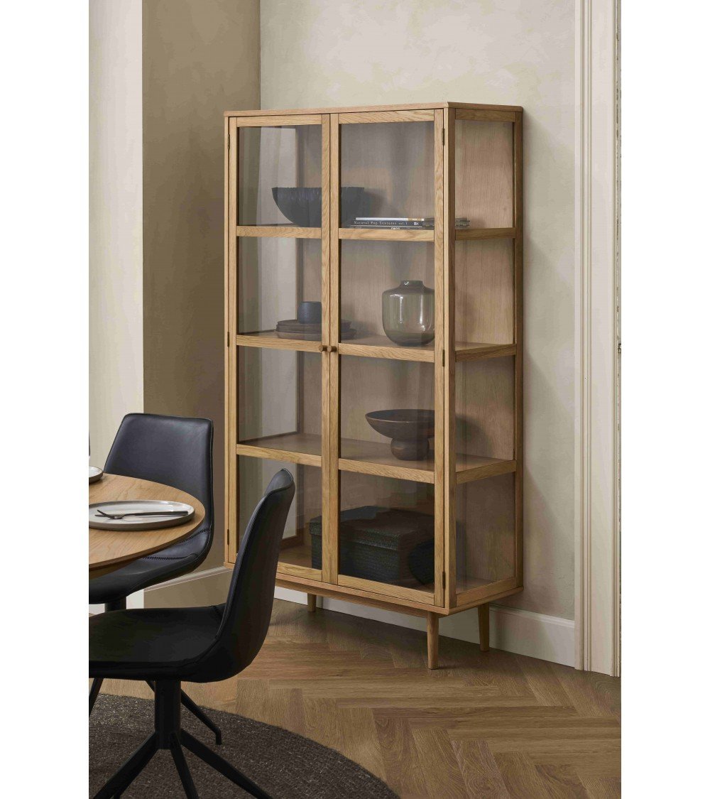 Derudover er der også to skuffer nederst på vitrinen, som giver god plads til opbevaring af servietter, stearinlys, en dug osv. Generelt får du her et smukt vitrineskab til en skarp pris, som både er smuk og funktionel. Vitrineskabet er både flot i et stuemiljø, men også i et spisestue miljø.