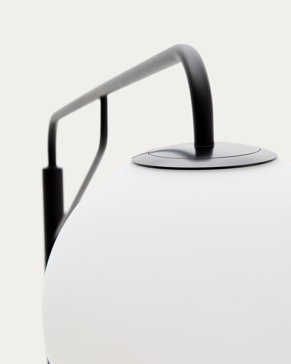Udvalgte detaljer Gulvlampe i stål med kugleformet lampeskærm af matteret glas.