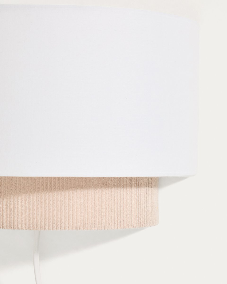 Udvalgte detaljer Væglampe med dobbelt lampeskærm i hvid bomuld og corduroy.