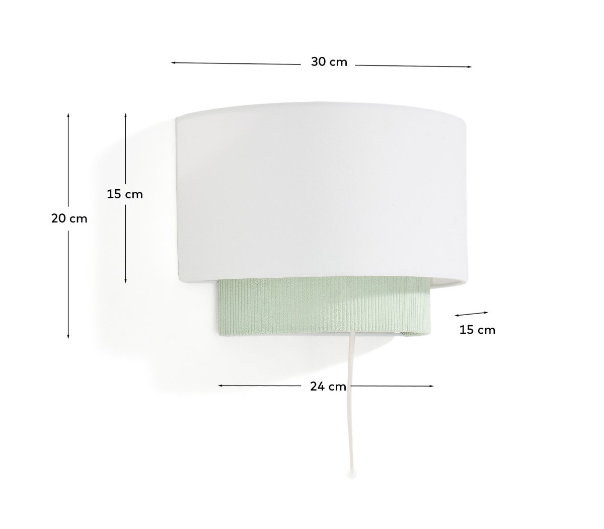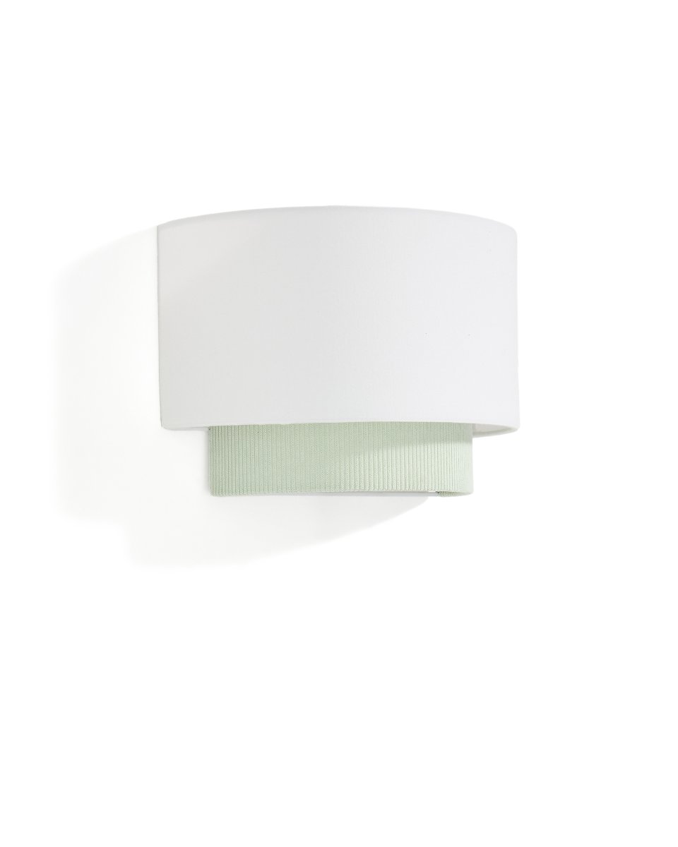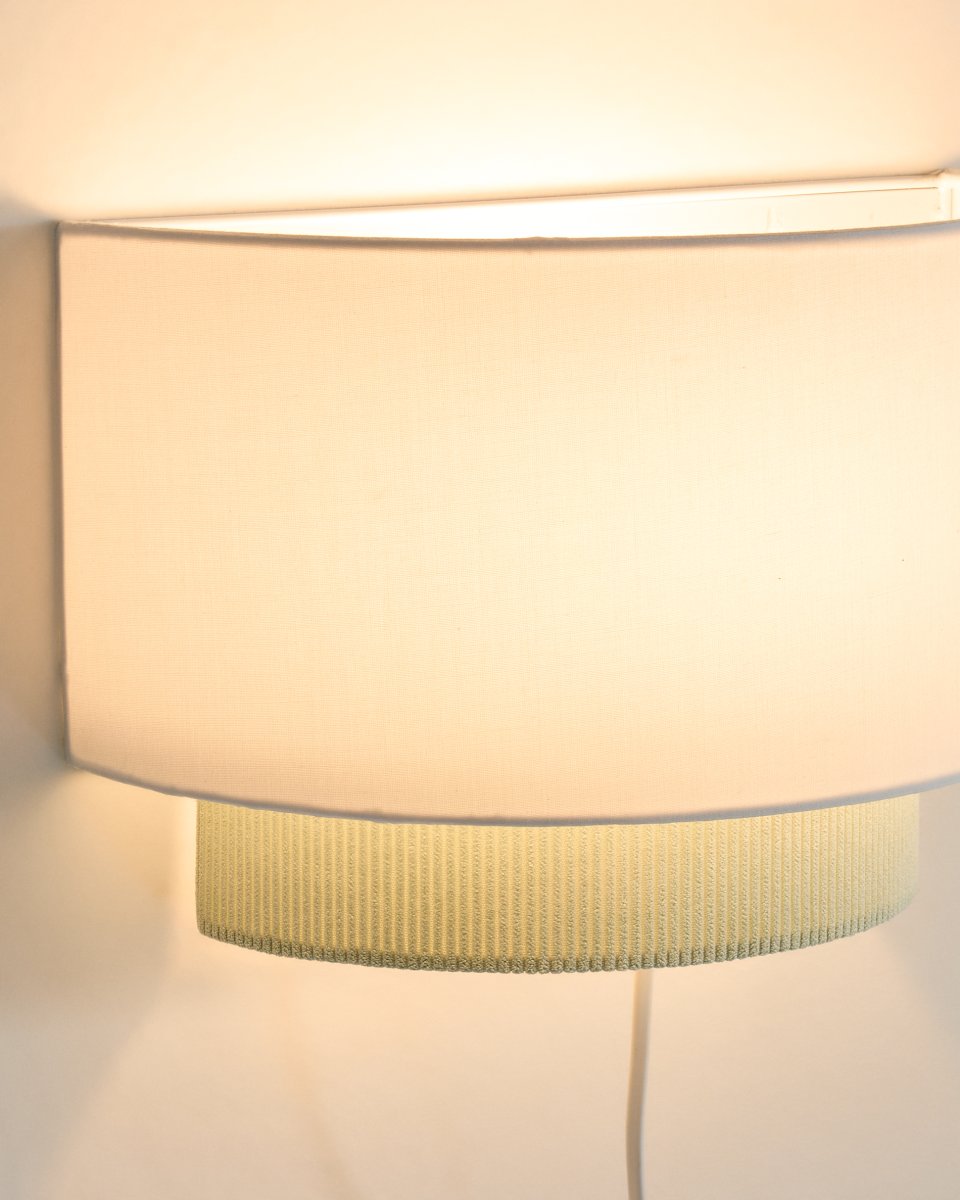 Udvalgte detaljer Væglampe med dobbelt lampeskærm i hvid bomuld og corduroy.