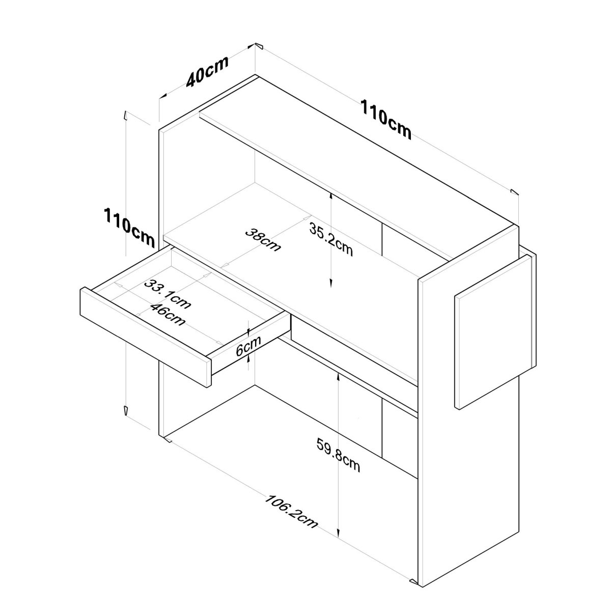 Kasse 1 - mål i cm (LxBxH) 116,5x45x10,4