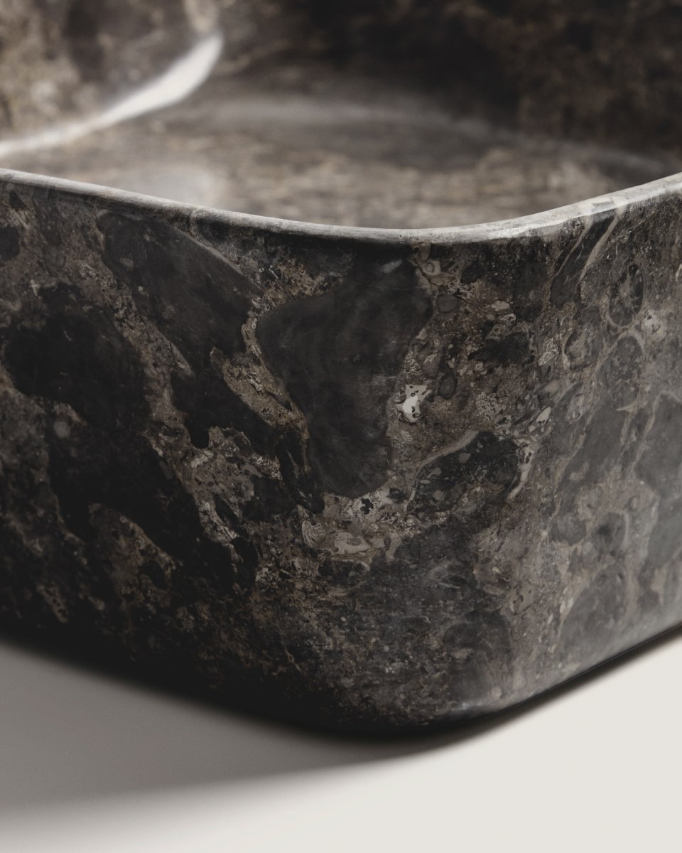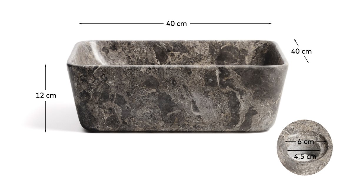 Udvalgte detaljer Grå Java marmor håndvask til bordpladen.
