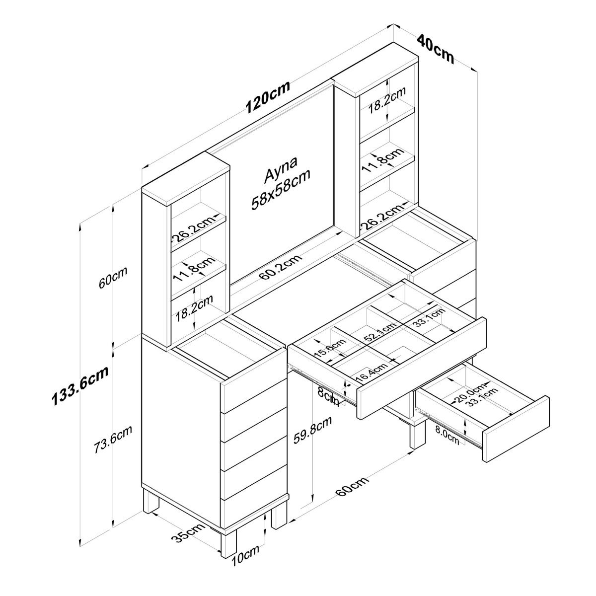 Kasse 3 - mål i cm (LxBxH) 127,5x66x7,8