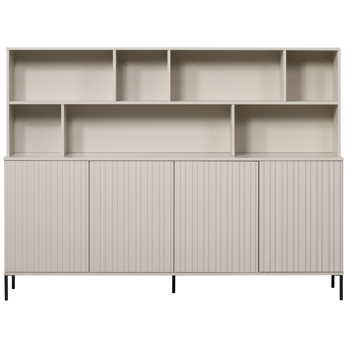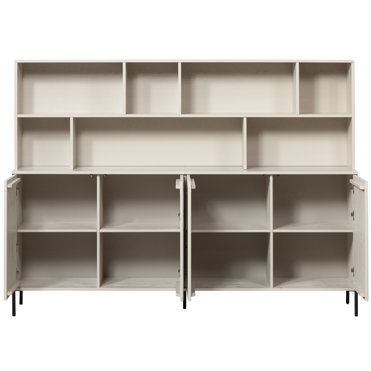 Rummeligt vægskab - Lavet af fyrretræ med støvfarvet lak - En udstillingsplads til dine smukkeste accessories - H 150 cm x B 200 cm x D 44 cm En unik tilføjelse til New Gravure skænken fra kollektionen af det hollandske interiørdesignmærke WOOOD, New Gravure vægskabet.