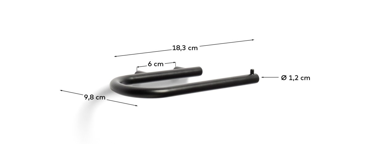 Udvalgte detaljer Toiletrulleholder i sort metal.