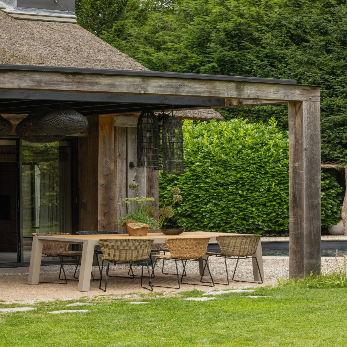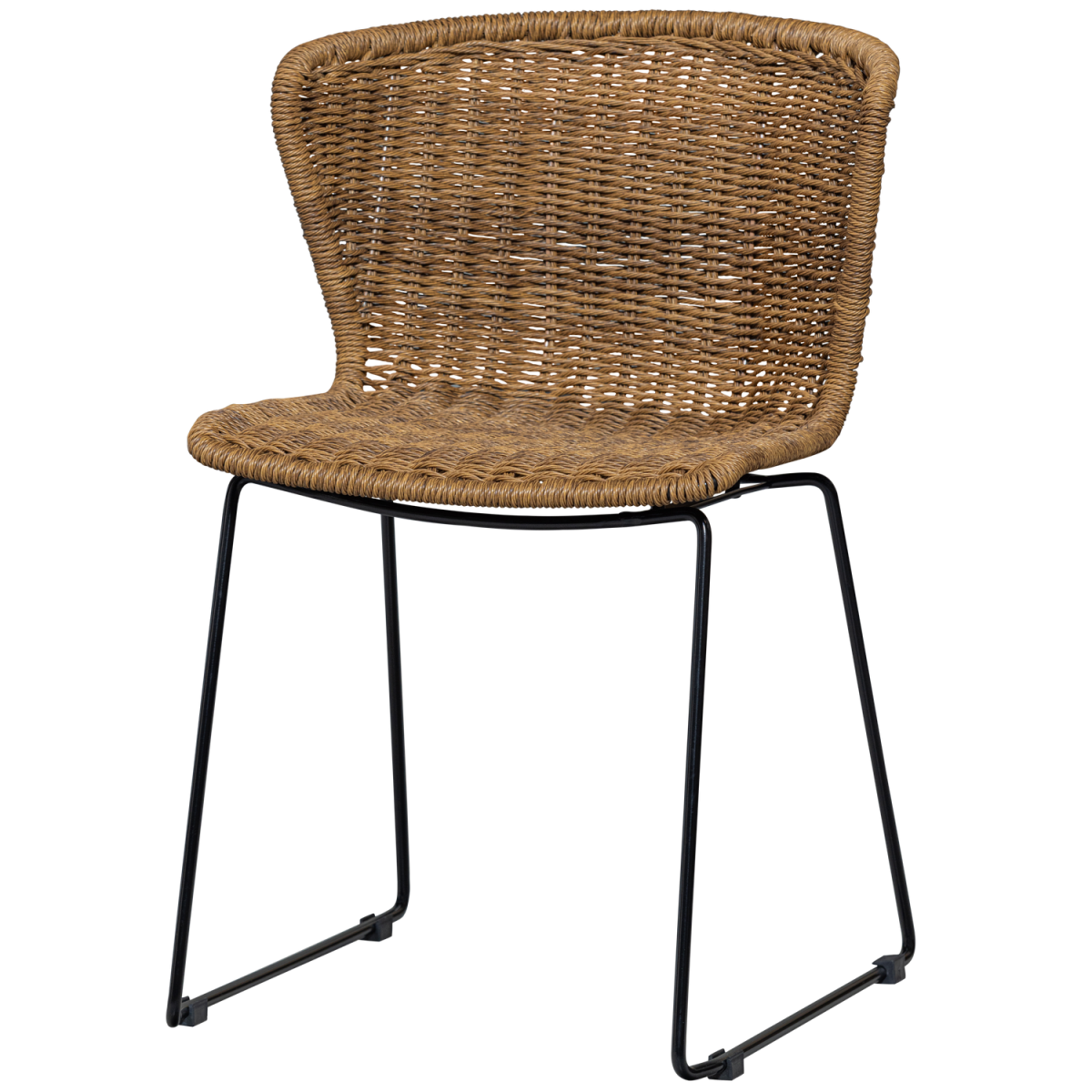 Disse robuste Wings-stole fra det hollandske mærke WOOOD opfylder tidens boligtrend; rattan og sort stål.
