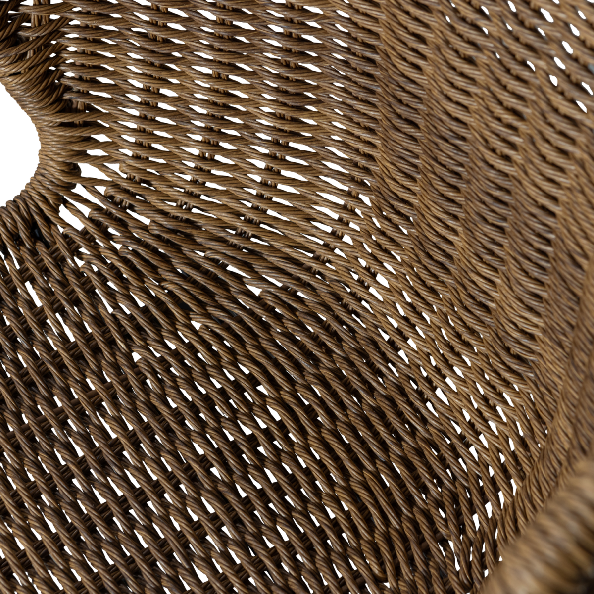 Sædet er lavet af flettet polyesterrattan i en naturlig farve.