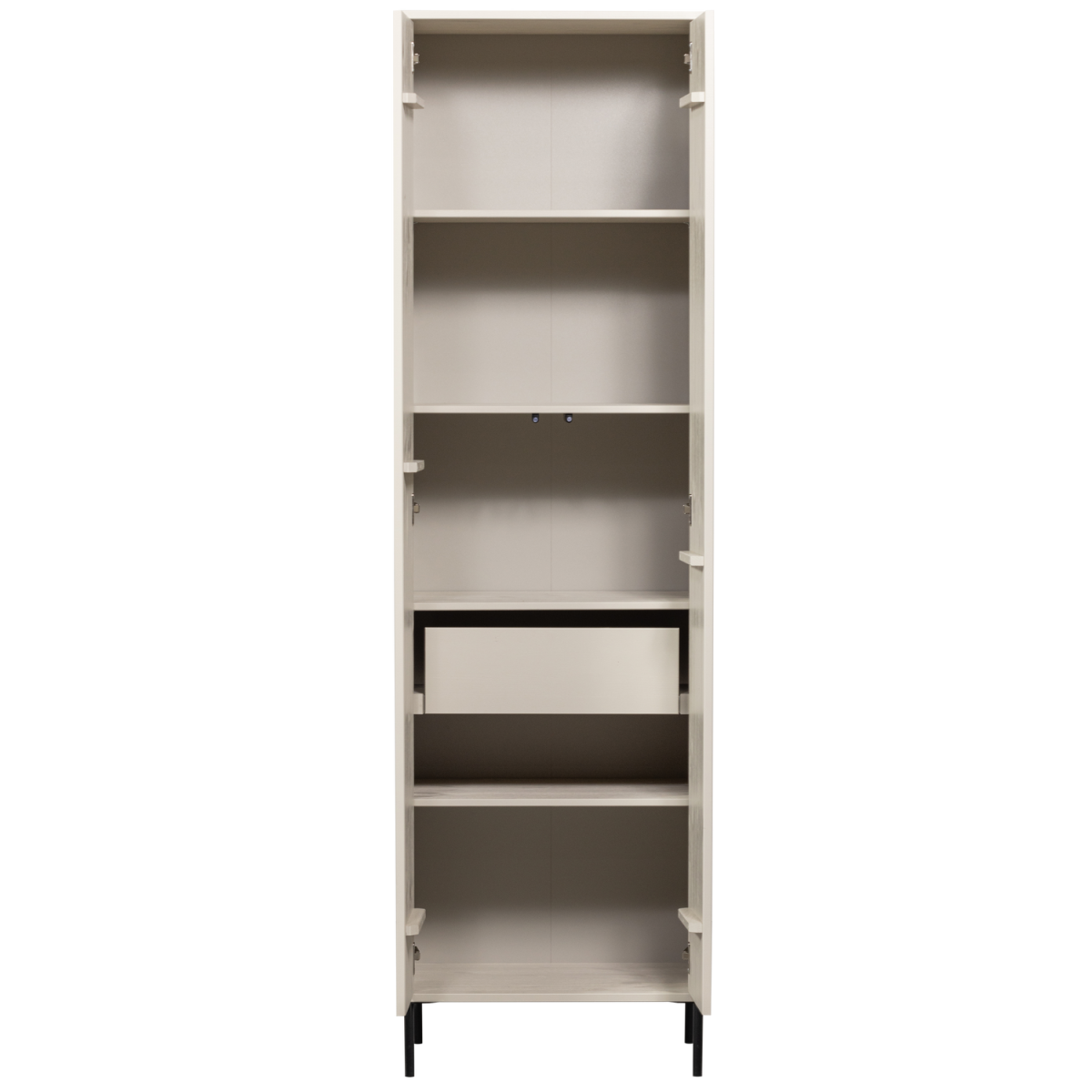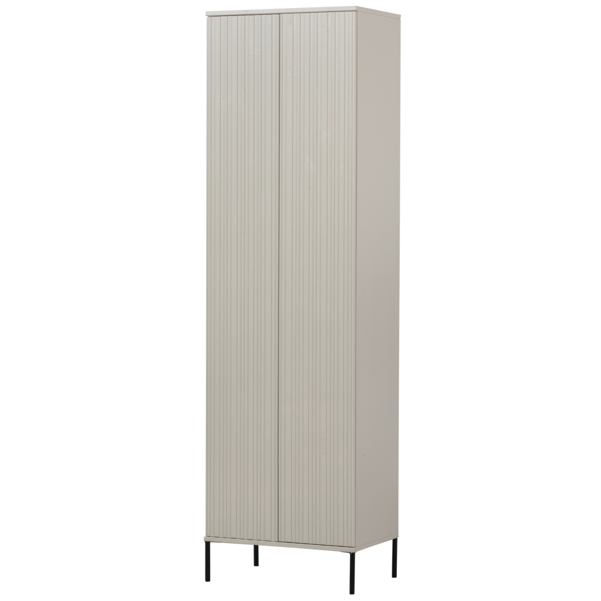 Slankt højskab med grafisk prægede låger - Lavet af fyrretræ med sort metalbund - Smalt skab med masser af opbevaringsmuligheder - H 210 cm x B 60 cm x D 42 cm - Hyldekapacitet: 10 kg Vores succesfulde Gravure-serie i et nyt look! Dette Gravure New højskab fra kollektionen fra det hollandske interiørdesignmærke WOOOD er et aktiv for opbevaringsentusiaster.