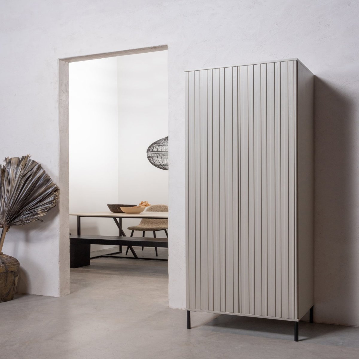Gravure New højskabet er lavet af fyrretræ og færdiggjort med en støvfarvet lak.