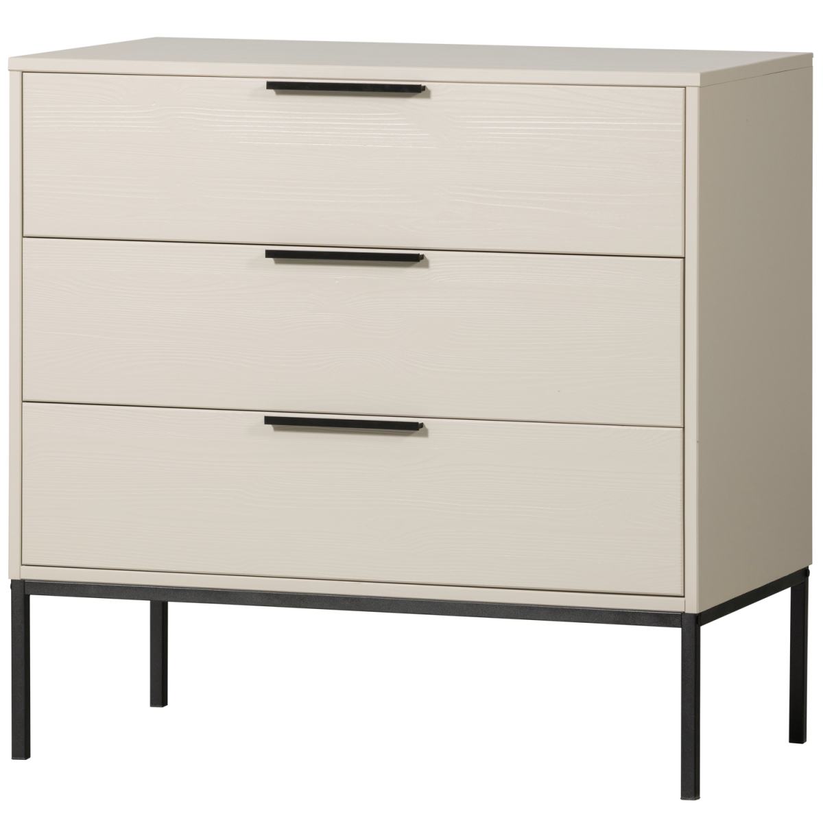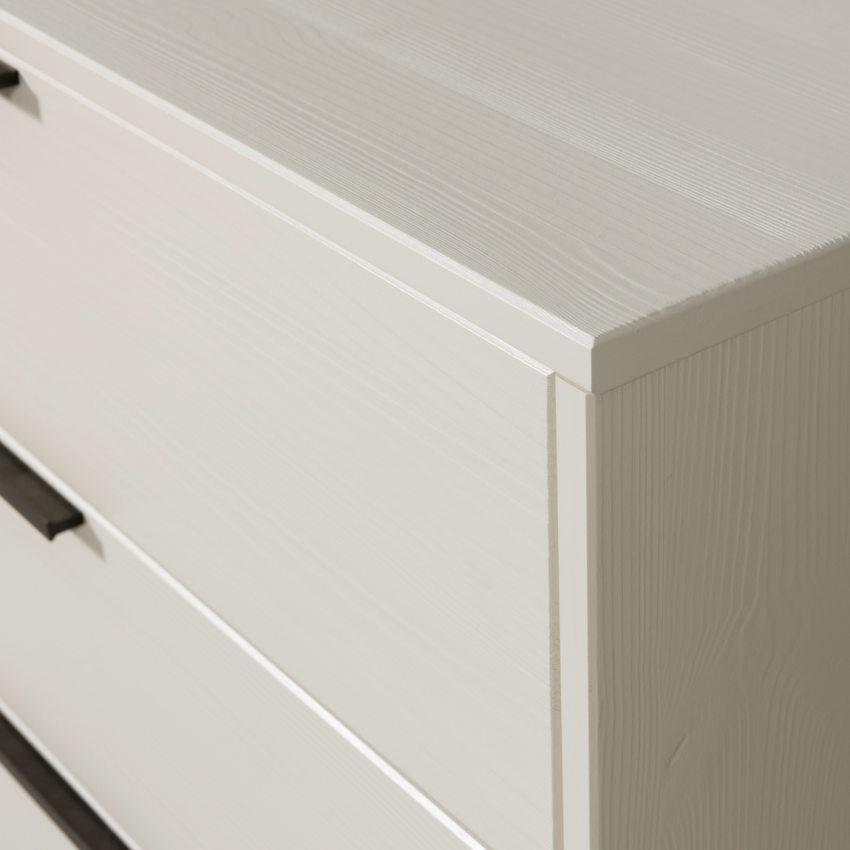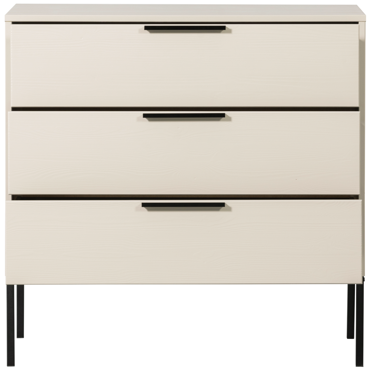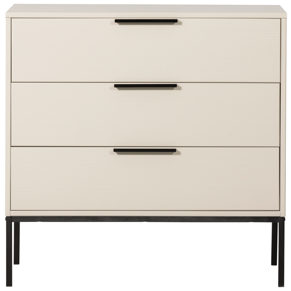 Robust kommode - Tre rummelige skuffer - Lavet af fyrretræ med børstet finish - H 93 cm x B 94 cm x D 52 cm Et moderne og rent design er det, der kendetegner denne kommode.
