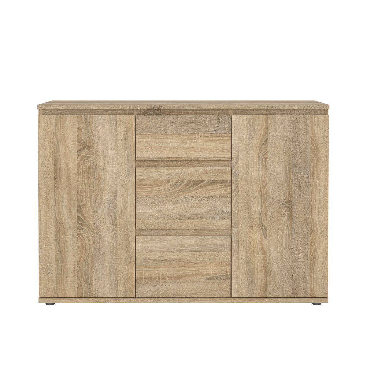 Lustrous skænk, m. 2 låger, 2 hylder og 3 skuffer - espresso eg og sort metal