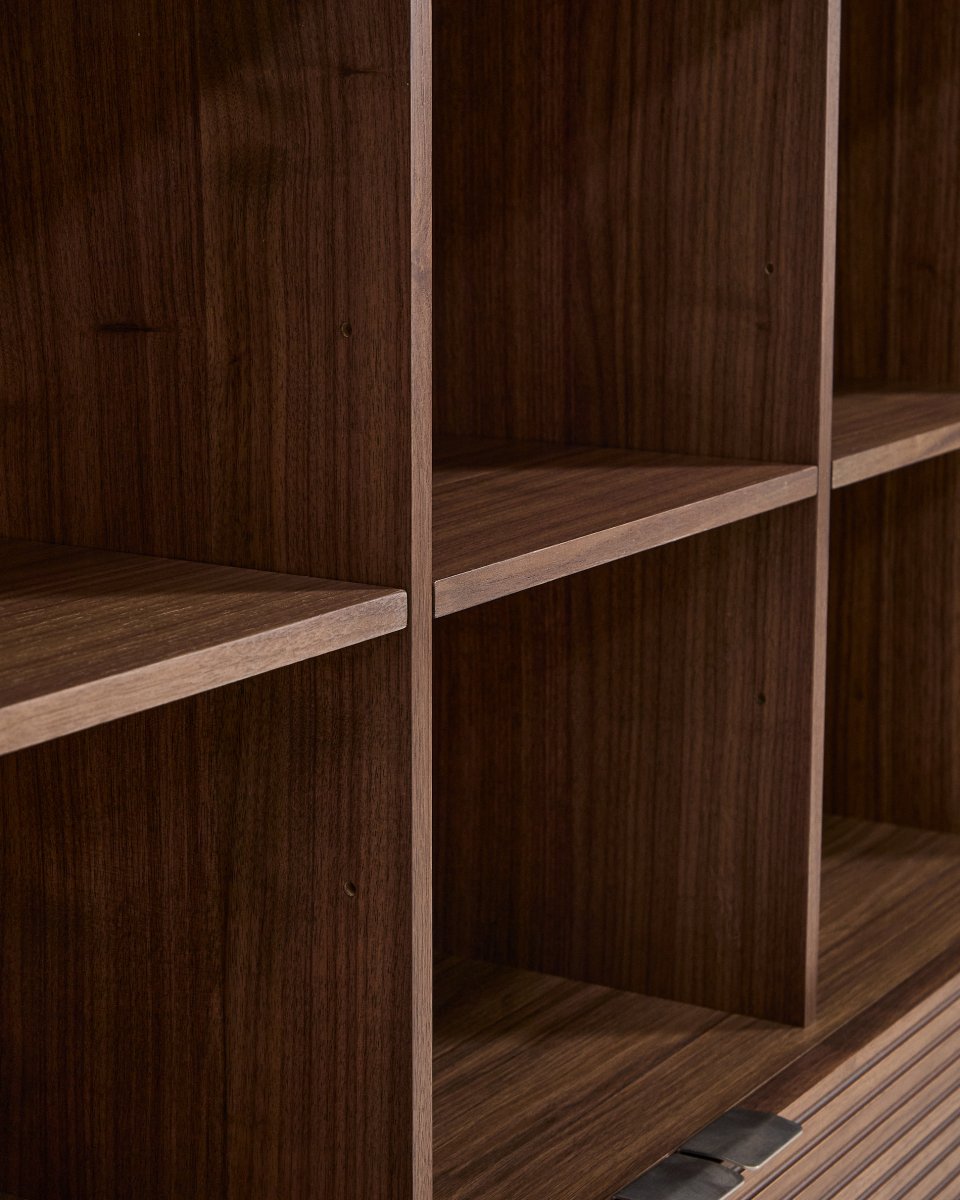 Lustrous skænk, m. 2 låger, 2 hylder og 3 skuffer - espresso eg og sort metal