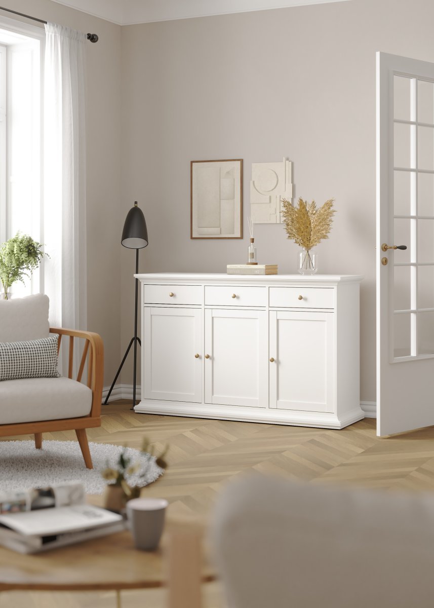 Du kan også placere den fine skænk ude i køkken alrummet. Så har du plads til både kogebøger, skåle og fade eller måske ludo eller matador, såfremt I godt kan lide at spille spil i familien. Oven på skænken kan du have en bordlampe stående Det skaber hygge samtidig med, at det er praktisk at have et godt lys, så du kan se de ting, du opbevarer bag skænkens låger.