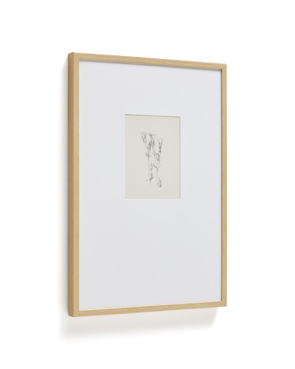 CREATIVE COLLECTION Tipper Illustration m. grønne blade, m. ramme - natur fyrretræ (46x34,5)